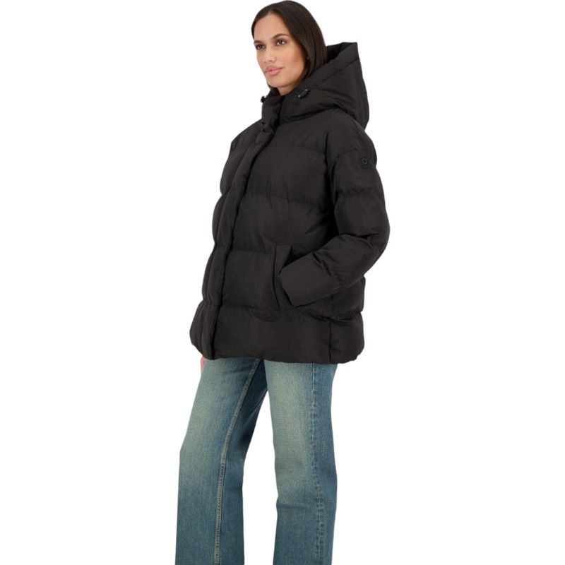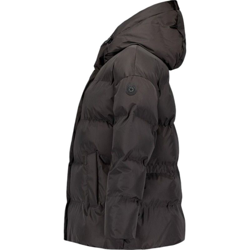 Deze zwarte comfortabele damesjas van Airforce heeft aan de voorzijde twee steekzakken met drukknopen, capuchon met trekkoord, logopatch op de linkermouw, ritssluiting die sluiten met drukknopen en een binnenzak met ritssluiting. De jas is gewatteerd en ideaal voor de koudere dagen!
