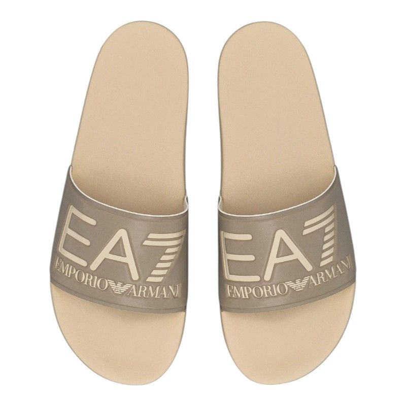De Armani EA7 beige herenslippers zijn je nieuwe zomermusthave. Deze stijlvolle slippers met band hebben een neutrale beige kleur die eenvoudig te combineren is met al je zomerse outfits. Draag deze casual slippers comfortabel naar het strand of zwembad en blijf in stijl tijdens je vrije tijd. Met de Armani EA7 herenslippers in beige maak je altijd een goede indruk. Perfect voor elke zonnige dag!