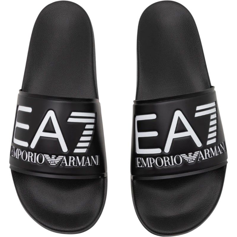 De Armani EA7 zwarte herenslippers zijn een must-have voor je casual garderobe. Deze zwarte slippers van Armani EA7 hebben een comfortabele pasvorm en zijn voorzien van een stevige band voor extra ondersteuning. Ideaal voor een relaxte dag in de zon of als je gewoon even snel de deur uit moet. De minimalistische look in combinatie met het bekende Armani EA7 logo zorgt ervoor dat deze slippers perfect passen bij elke zomerse outfit. Kies voor zwart en genieten maar!
