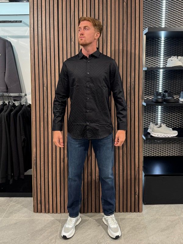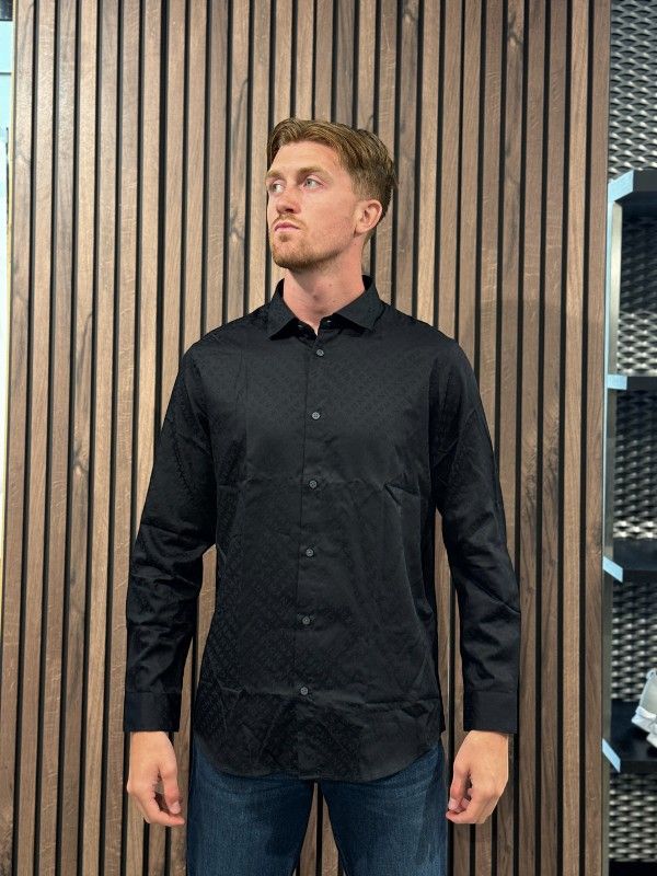 Maak kennis met de stijlvolle zwarte blouse van Armani Exchange, perfect voor de moderne man. Deze herenblouse is uitgevoerd in hoogwaardig katoen, wat comfort en ademend vermogen garandeert. De opvallende logoprint geeft het kledingstuk een eigentijdse twist. Met zijn regular fit pasvorm en hoog sluitende hals biedt deze overhemd een nette en tijdloze uitstraling. De knoopsluiting voegt een klassieke touch toe, waardoor je deze Armani Exchange blouse gemakkelijk kunt combineren met een bijpassende zwarte broek of een trendy jasje. Ideaal voor zowel formele als casual gelegenheden, deze blouse is een must-have toevoeging aan je garderobe. Voeg stijl en klasse toe aan je look met deze modieuze zwarte blouse!