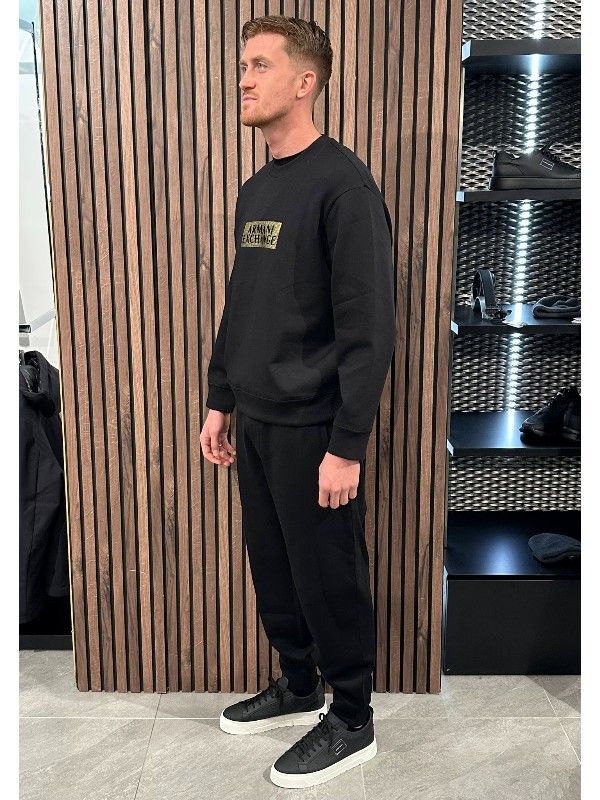 Ga voor ultiem comfort met de zwarte joggingbroek van Armani Exchange. Deze mannen sweatpants zijn gemaakt van zacht materiaal dat heerlijk aanvoelt op je huid. De pasvorm is relaxed, perfect voor een casual dag of een workout. Met een elastische tailleband en trekkoord, kun je de broek precies afstellen zoals jij het prettig vindt. De joggingbroek heeft handige zijvakken voor je essentials. Draag de joggingbroek samen met een bijpassend Armani Exchange vest voor de complete look! Zorg dat je altijd comfortabel en trendy voor de dag komt. Ontdek vandaag nog jouw nieuwe favoriete lounge-item!