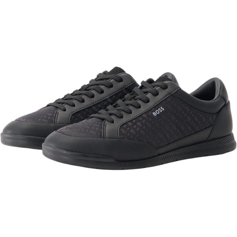 De zwarte Boss Nitan_Lowp herensneakers zijn perfect voor een strakke, casual look. Deze stijlvolle sneakers hebben dunne zolen, wat ze geschikt maakt voor dagelijks gebruik. De neutrale zwarte kleur maakt het eenvoudig om ze te combineren met diverse outfits, van jeans tot chino's. Met het iconische Boss-design straal je altijd klasse uit. Voeg deze zwarte Boss sneakers toe aan je collectie voor een moeiteloze, trendy uitstraling.
