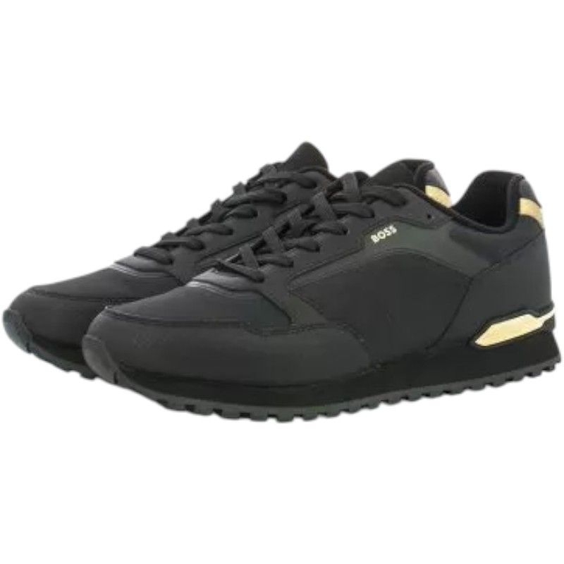 Maak kennis met de Parkour_L herensneakers van Boss, dé must-have voor elke trendy outfit. Deze zwarte sneakers zijn perfect voor een sportieve look of een casual dagje uit. Gemaakt van hoogwaardige materialen die zorgen voor een comfortabele pasvorm, bieden ze de ideale ondersteuning voor al jouw avonturen. De zwarte kleur van deze runners maakt ze supermakkelijk te combineren met al je favoriete outfits. Of je nu een wandeling maakt in het park of de stad in gaat, met de zwarte herensneakers van Boss zit je altijd goed. Kies voor comfort en stijl. Voeg deze toppers vandaag nog aan je collectie toe!
