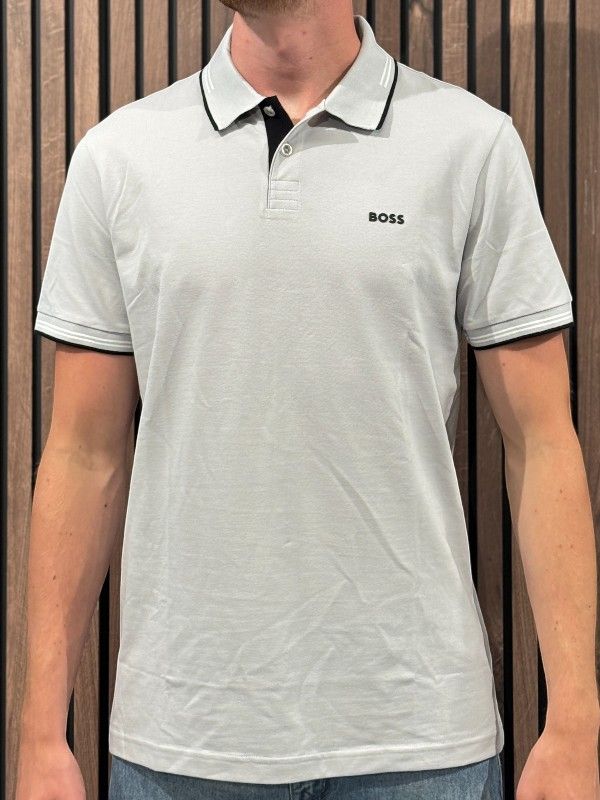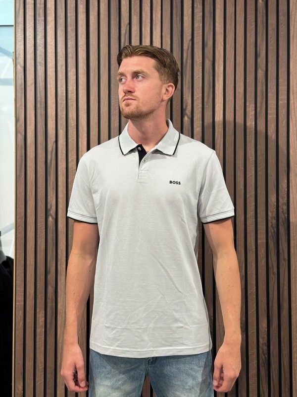 Deze grijze Boss polo is bewerkt met zwarte en witte details, wat de polo een unieke uitstraling geeft. Met stretch materiaal en een slim fit pasvorm zit hij heerlijk en past hij perfect bij elke casual of sportieve look.