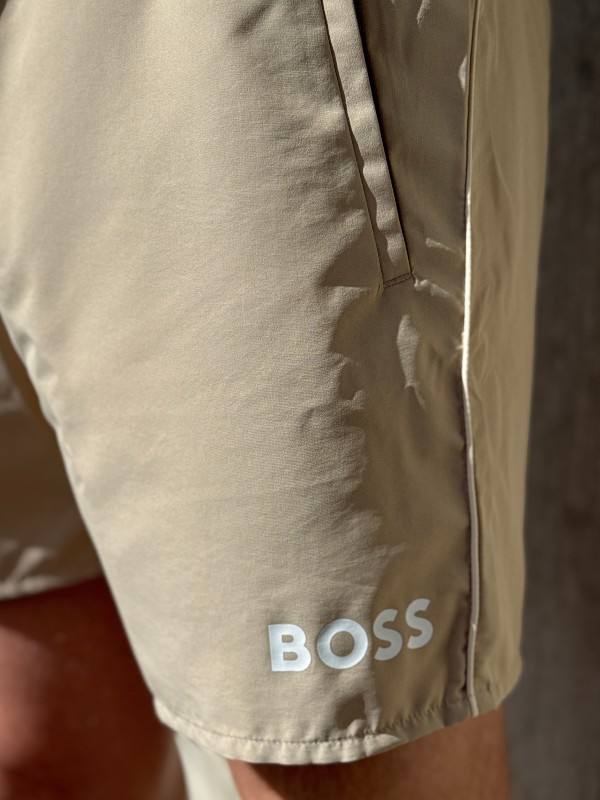 De Boss Starfish shorts in beige zijn dé aanvulling op je zomergarderobe. Deze heren zwembroek van Boss Beach, uitgevoerd in een snel drogend materiaal, heeft een elastische band met koord voor extra comfort. De handige klittenbandzakken maken deze beige kortbroek praktisch voor elke gelegenheid. Met een regular fit pas je altijd goed en de binnenbroek zorgt voor extra ondersteuning. Combineer je Boss shorts met het bijpassende item voor een complete look. Ontdek de veelzijdigheid van deze Boss Starfish broek en maak je zomeroutfit helemaal af.