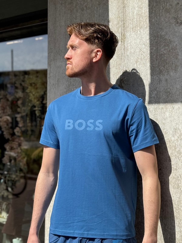 De Boss blauwe T-Shirt RN van de Beach collectie is de perfecte aanvulling op je garderobe. Dit blauwe heren T-shirt van Boss is gemaakt van comfortabel katoen en heeft korte mouwen. Met een ronde halslijn en een regular fit en stretch biedt het T-shirt een relaxte pasvorm. Het subtiele Boss logo op de borst zorgt voor een stijlvolle touch. Combineer deze Boss T-shirt met het bijpassende item voor de volledige look. Voeg wat Boss vibes toe aan je dagelijkse outfit met dit veelzijdige blauwe T-shirt.
