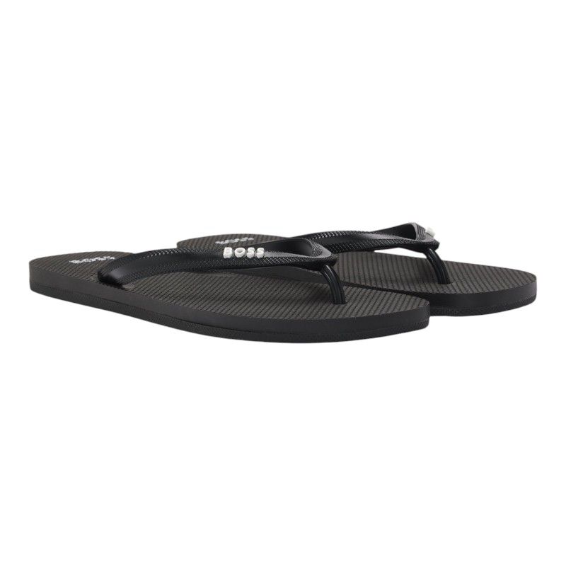 Ontdek de zwarte Boss Tracy_Thng heren teenslippers. Deze slippers bieden een comfortabele pasvorm en zijn perfect voor ontspannen dagen. Dankzij hun basic design zijn de zwarte Boss slippers ideaal voor elke zomerse outfit. Draag deze trendy slippers tijdens een dagje strand of een casual wandeling door de stad. Voeg de zwarte teenslippers van Boss toe aan je collectie en stap stijlvol de zomer in!