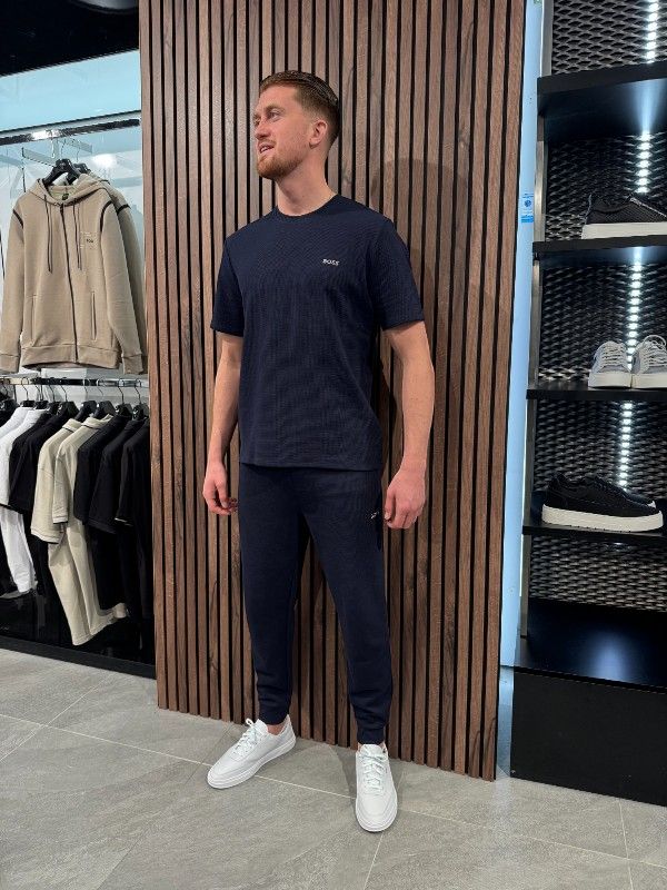 Ontdek de comfortabele Waffle Pants Cuff van Boss, de ultieme heren joggingbroek voor elke casual dag. Deze blauwe joggingbroek uit de Boss lounge lijn is gemaakt van hoogwaardig materiaal en biedt een relaxte pasvorm. De elastische boorden zorgen voor een perfecte fit, terwijl de tailleband met trekkoord je in staat stelt om de broek naar wens aan te passen. Door het subtiele wafelpatroon krijgt deze sportieve broek net dat beetje extra. Combineer de blauwe sportbroek met een casual t-shirt of hoodie voor de perfecte outfit. Een must-have voor je garderobe. Voeg stijl en comfort toe aan je dagelijkse look met deze blauwe joggingbroek van Boss!