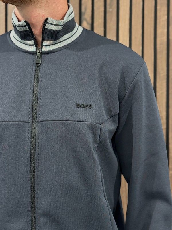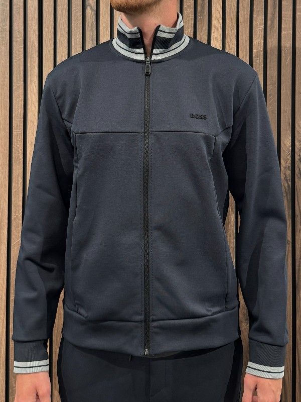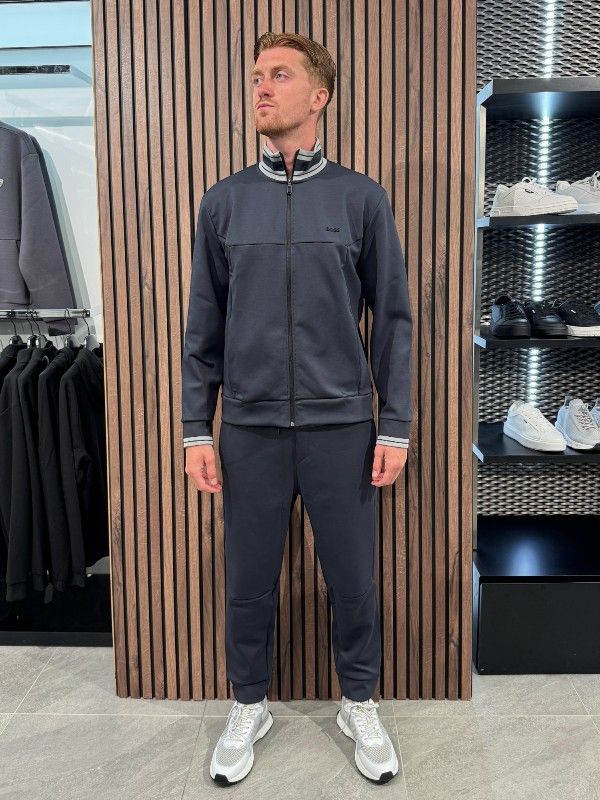 Dit donkerblauwe Boss vest is voorzien van steekzakken en heeft een zwart 3D logo op de borst. Het vest bevat stretch voor een comfortabele pasvorm en is ideaal voor dagelijks gebruik. Deze donkerblauwe Boss joggingbroek, Pants Zone, is afgewerkt met zwarte details, waaronder een zwart Boss logo op de broekspijp. De broek heeft een elastische heupband met trekkoord en bevat stretch voor extra draagcomfort.