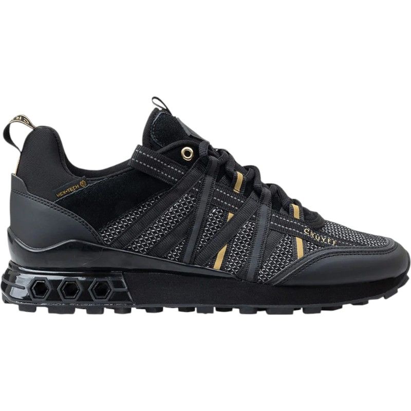 Ontdek de stoere Cruyff Classics Fearia Hex-Tech sneakers voor heren! Deze zwarte sneakers combineren een eigentijds design met optimaal comfort. Gemaakt van hoogwaardig materiaal, bieden ze een flexibele pasvorm die zich perfect aanpast aan je voet. De stijlvolle Fearia Hex-Tech schoenen van Cruyff Classics hebben een unieke uitstraling door de subtiele hexagonale details. Het ademende bovenwerk en de stevige zool zorgen voor een perfecte balans tussen stijl en functionaliteit. Deze zwarte Cruyff Classics raceklare sneakers zijn een must-have voor elke trendy man. Upgrade je collectie nu met deze zwarte runners van Cruyff Classics en stap zelfverzekerd de deur uit!