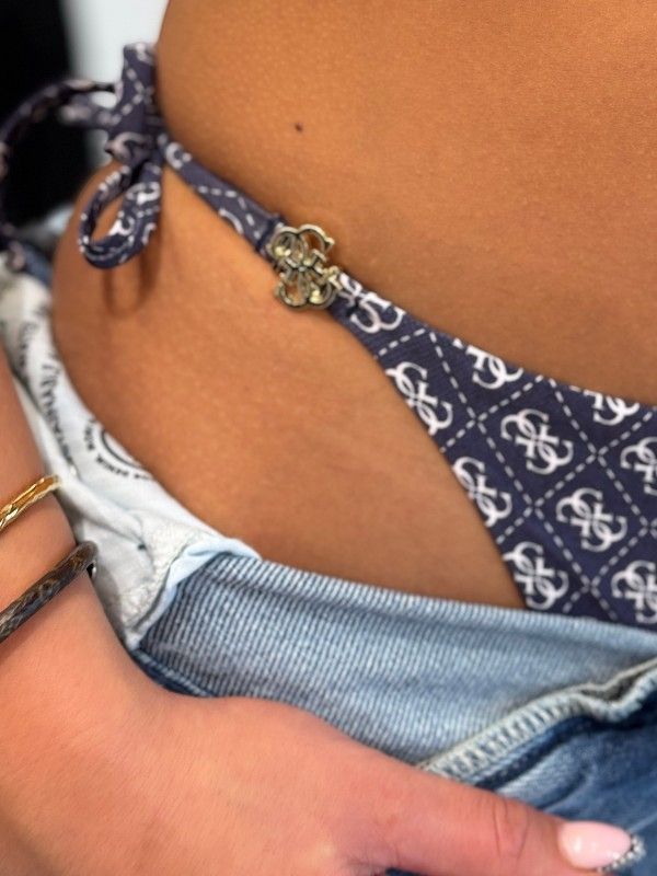 De blauwe GUESS 4G Bikini Brief is een stijlvolle toevoeging aan je swimwear collectie. Dit blauwe bikinibroekje heeft de iconische GUESS 4G logoprint, wat zorgt voor een trendy en herkenbare uitstraling. Het model heeft een Brazilian fit aan de achterkant, waardoor het broekje iets hoger uitgesneden is en een vrouwelijke, flatterende pasvorm heeft. Perfect om te combineren met de bijpassende GUESS 4G bikinitop voor een complete en modieuze strandlook. Met dit GUESS bikinibroekje voeg je moeiteloos een trendy en opvallend item toe aan je zomergarderobe.
