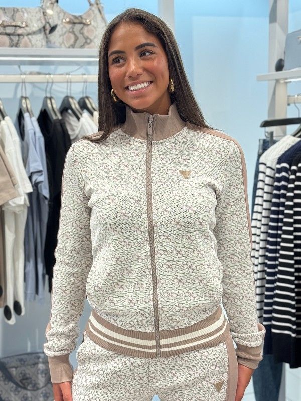 Ga voor ultieme stijl en comfort met het Guess 4G Rhombus Jacquard trainingspak in trendy beige. Het vest is gemaakt van zacht joggingmateriaal, heeft een relaxte pasvorm, handige steekzakken en een ritssluiting voor optimaal gemak. De bijpassende joggingbroek sluit perfect aan dankzij de elastische tailleband en is voorzien van dezelfde opvallende Guess 4G-logoprint. Samen vormen ze een complete en fashionable look – ideaal voor een casual dag, een workout of een relaxmoment thuis.