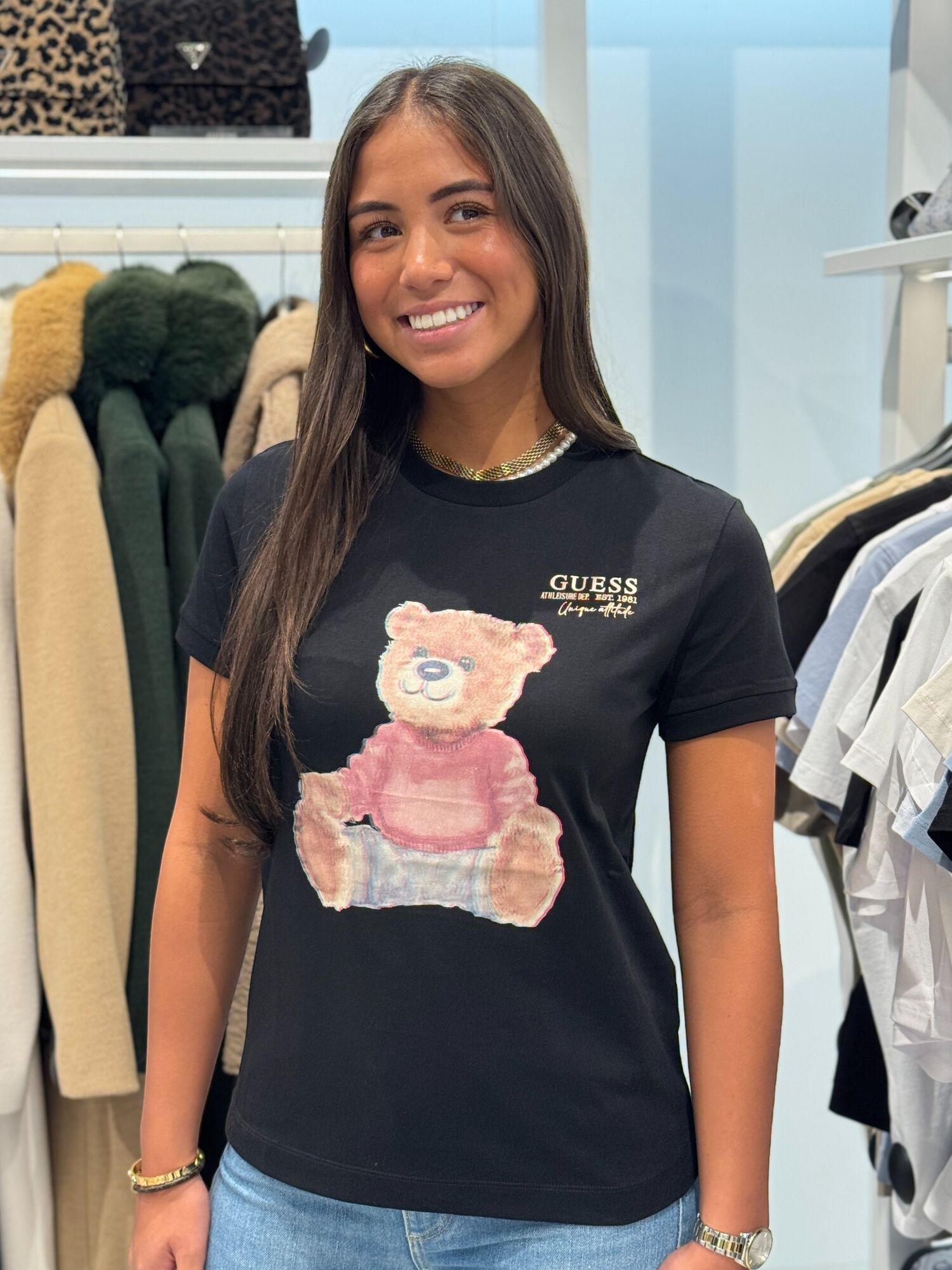 Het Guess Active Carla Cn Ss T-shirt in zwart is jouw nieuwe favoriete dames T-shirt. Dit zwarte T-shirt met korte mouwen is perfect voor een casual, dagelijkse look. De comfortabele pasvorm maakt het ideaal om te dragen in verschillende situaties. Combineer het zwarte Guess Active T-shirt met je favoriete jeans of rok voor een moeiteloos coole uitstraling. Voeg dit veelzijdige zwarte T-shirt van Guess Active toe aan je garderobe en geef je outfit een trendy twist!