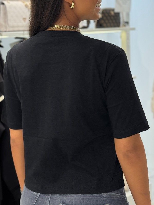 Dit zwarte Guess shirt heeft een wijd, relaxed model en is gemaakt van zachte stof voor extra draagcomfort. Op de voorkant staan witte Guess letters die zijn gestikt voor een subtiele en stijlvolle uitstraling. Een basic met een trendy touch.