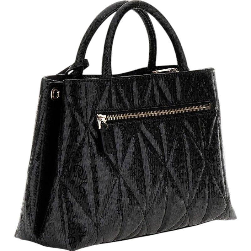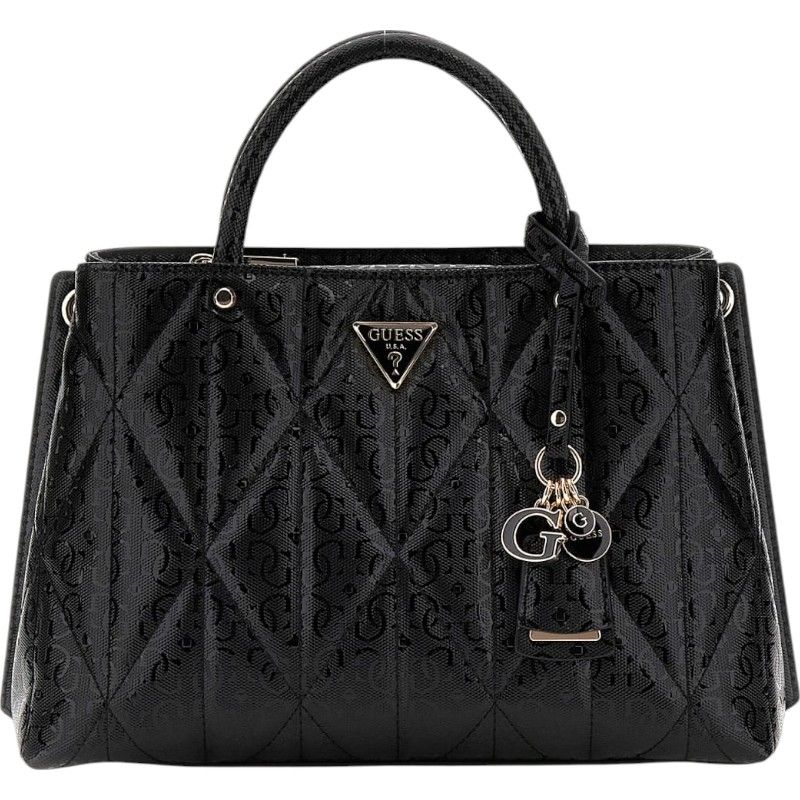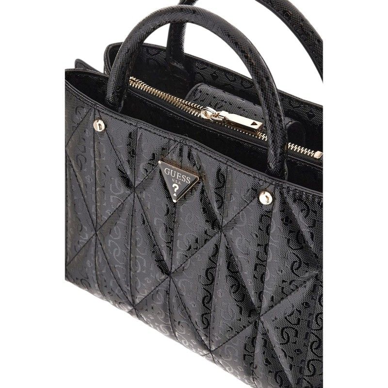 Deze zwarte Guess tas is gemaakt van mooi glanzend materiaal en bewerkt met een Guess logoprint. De damestas is voorzien van een vast kort hengsel en een lange, verstelbare en afneembare schouderband waardoor ze te dragen is als handtas, crossbody tas en schoudertas.