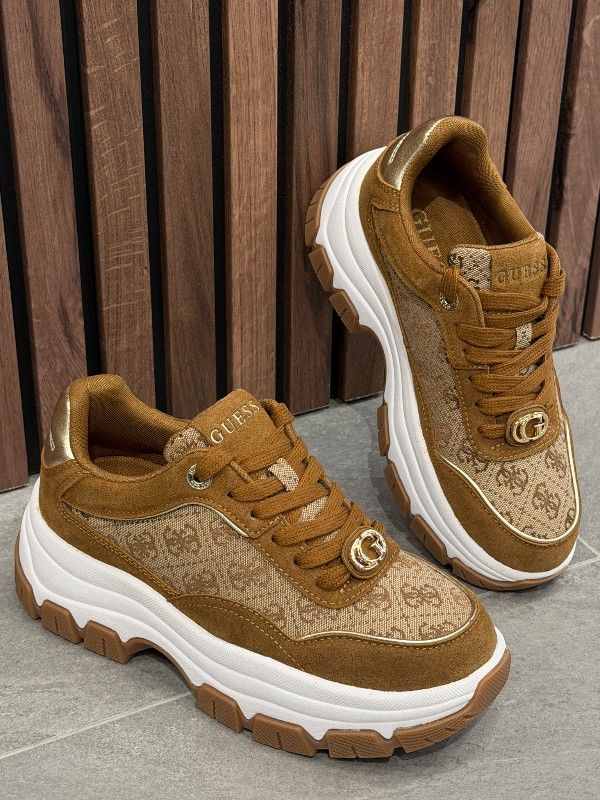 Met deze trendy sneakers van Guess, model Berrett3 in een stijlvolle beige kleur, loop jij er altijd hip bij! De sneakers hebben een grove zool voor een stoere uitstraling en extra comfort. Het Guess 4G's logo zorgt voor een speelse touch, ideaal voor wie een statement wil maken. Deze dames sneakers zijn perfect te combineren met je favoriete jeans of een casual jurkje voor een coole look. Zoek je herkenbare sneakers die je outfit compleet maken? Dan zijn deze opvallende schoenen van Guess precies wat je nodig hebt! Bestel vandaag nog en zet de eerste stap in stijl.