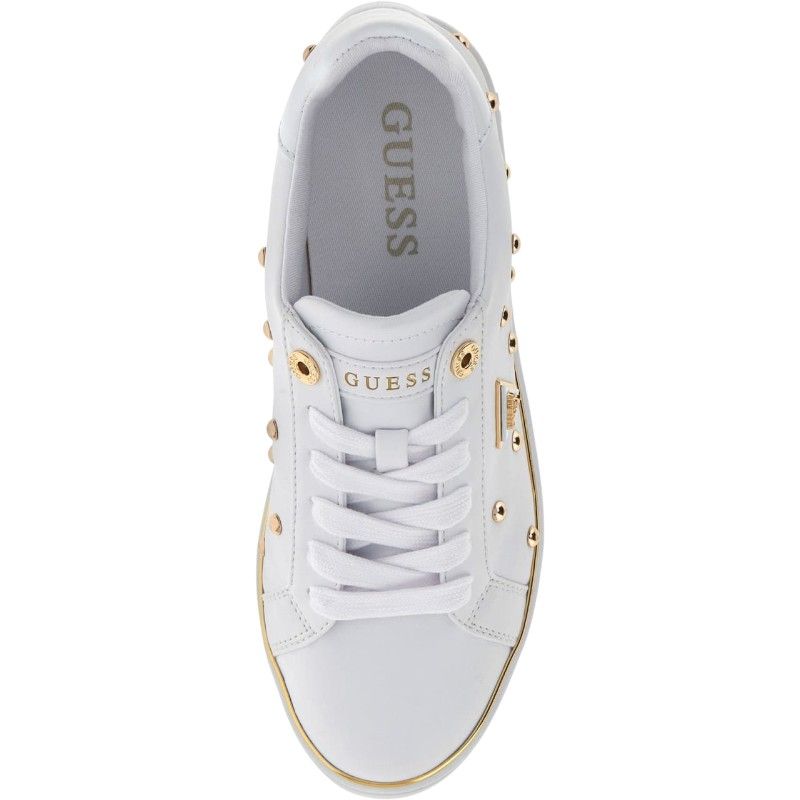 Voel je trendy en comfortabel in de Guess Bonitah lage sneakers. Deze stijlvolle damessneakers in fris wit zijn een must-have voor je schoenenverzameling. Met hun platte zolen bieden ze de hele dag door comfort en ondersteuning. Het herkenbare Guess Triangle logo geeft de schoenen een unieke, modieuze uitstraling. Ideaal voor een casual dagje uit of een ontspannen wandeling, deze witte sneakers zijn makkelijk te combineren met je favoriete jeans en T-shirt. Upgrade je streetstyle met de witte Guess Bonitah sneakers en maak elke outfit compleet!
