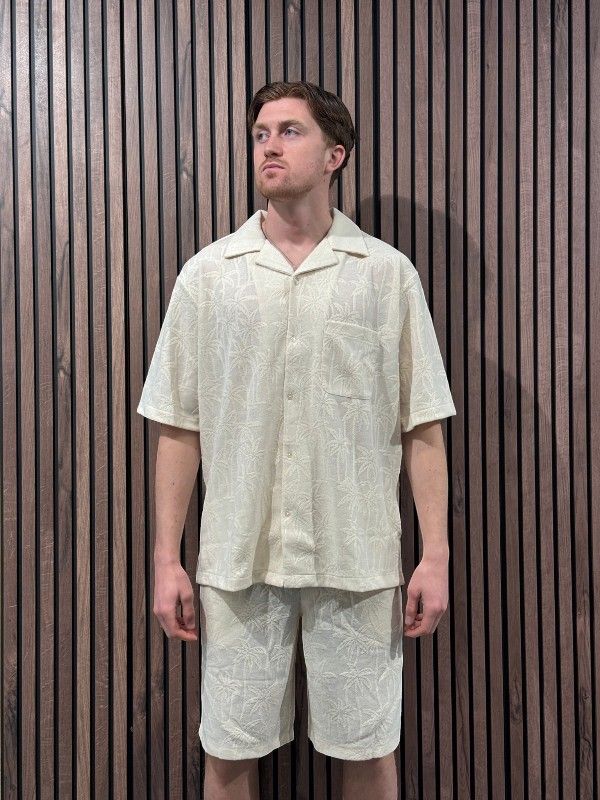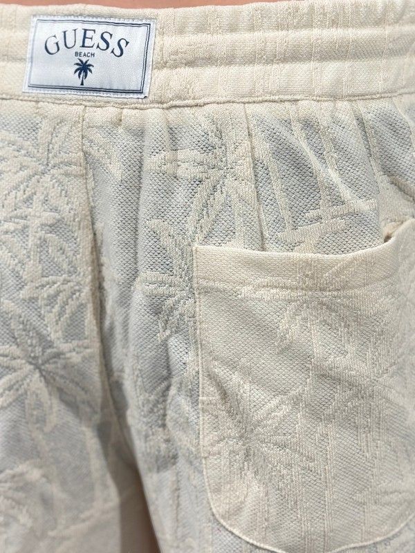 De Guess Bowling Resort Palm korte broek in beige is een must-have voor elke trendy man. Deze beige heren korte broek heeft een comfortabele pasvorm dankzij de elastische band met koordsluiting. De praktische steekzakken maken het gemakkelijk om je essentials mee te nemen. Deze Guess korte broek in een neutrale beige tint geeft je zomeroutfit een stijlvolle look. Perfect voor een casual dagje uit of een ontspannen weekend. Voeg deze veelzijdige Guess korte broek toe aan je garderobe en stap stijlvol de zonnige dagen in.
