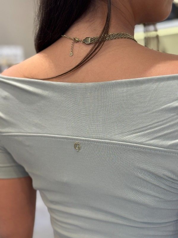 De Guess Brigitte Off Shoulder Top in groen is een must-have dames top. Deze groene top is gemaakt van rib materiaal, wat zorgt voor een trendy look en feel. Het t-shirt bevat stretch en zit erg comfortabel. De sierknoopdetails geven het een extra stijlvol accent. Ideaal voor elke casual of feestelijke gelegenheid. Combineer deze Guess top gemakkelijk met je favoriete jeans of rok voor een complete outfit. Mis deze stijlvolle Guess Brigitte top in groen niet!