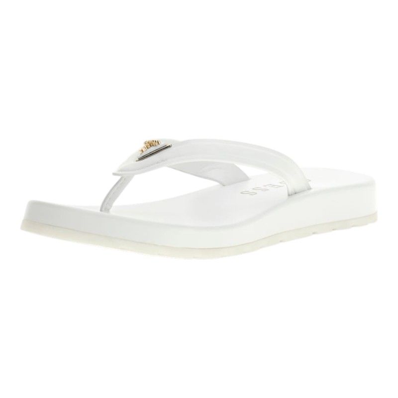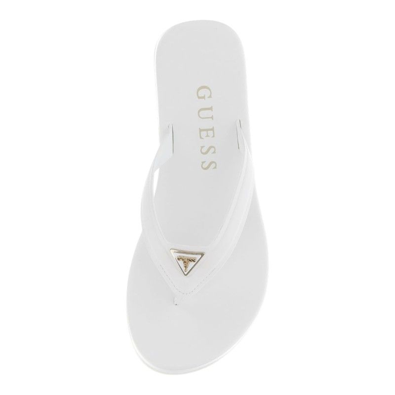 De Guess Candry teenslippers in wit zijn een echte must-have voor je zomergarderobe. Deze dames teenslippers zijn stijlvol en dragen het iconische Guess Triangle logo, wat direct een trendy statement maakt. Perfect voor zonnige dagen, stranduitjes of een casual dagje uit. Draag de witte Guess Candry slippers met je favoriete zomerse outfit voor een moeiteloze look. Voeg deze witte Guess teenslippers snel toe aan je collectie en stap stijlvol de zomer in.