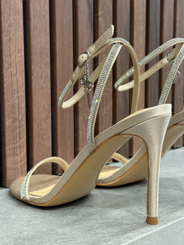 De GUESS Charmer dames sandalen in beige zijn dé must-have voor een avondje uit. Deze trendy sandalen zijn voorzien van sprankelende strass steentjes en trekken gegarandeerd alle aandacht. Met een hakhoogte van 9 centimeter geven ze je net dat beetje extra lengte zonder in te leveren op stijl. Het subtiele GUESS logo is prachtig afgewerkt met strass, wat zorgt voor een glamoureuze touch. Draag deze beige GUESS sandalen met je favoriete outfit om elke look compleet te maken. Maak je avond speciaal met deze eyecatchers!