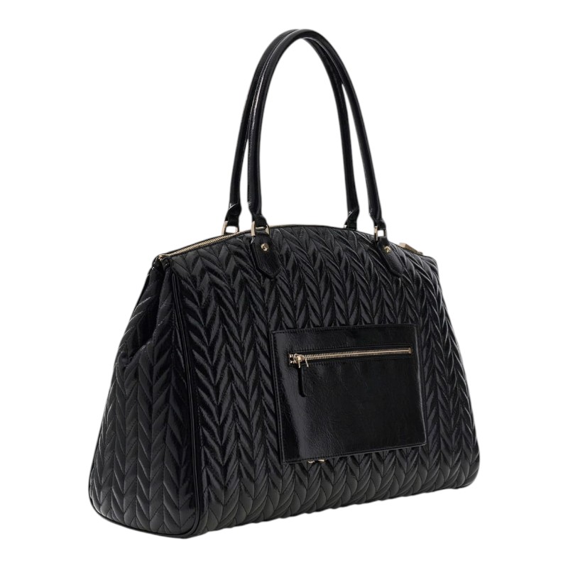 De Guess Cheryl Travel Deluxe is de ultieme dames reistas in stijlvol zwart. Deze stijlvolle Guess reistas combineert fashion en functionaliteit perfect. Met voldoende ruimte om al je travel essentials in op te bergen, is deze zwarte Guess tas een must-have voor elke reiziger. Dankzij de stevige handgrepen draag je de tas eenvoudig overal mee naartoe. Voeg de elegante zwartgekleurde Guess Cheryl Travel Deluxe tas toe aan je collectie en geniet van je volgende trip in stijl. Pak je spullen en reis in stijl met deze Guess reistas!