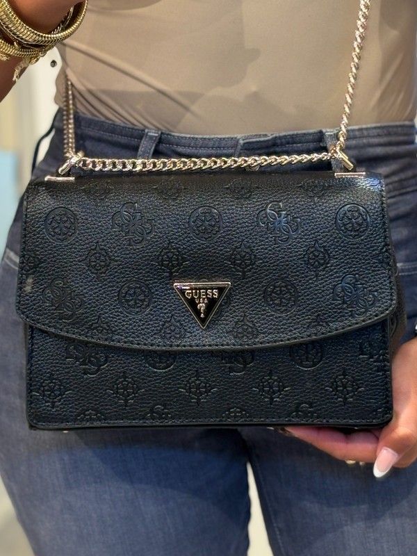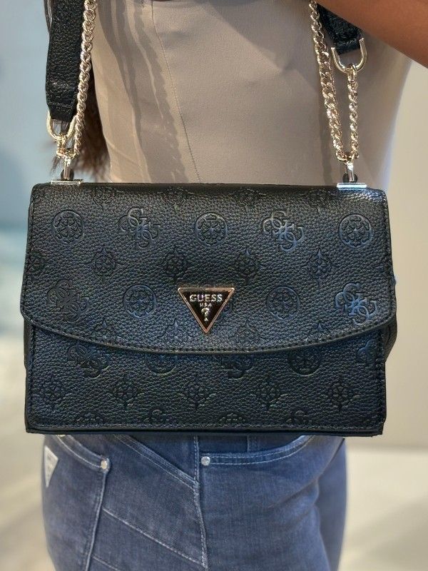 Maak kennis met de hippe Guess Cresidia II Cnvrtbl Xbody Flap tas! Deze veelzijdige zwarte damestas is perfect als crossbody. Met zijn stijlvolle Guess 4G's logoprint straalt hij coolheid en merkbewustheid uit. Het hoofdvak van de middelgrote tas heeft een handige drukknoopsluiting om je spullen veilig op te bergen. De verstelbare band zorgt ervoor dat je de tas comfortabel als crossbody kunt dragen, maar ook gemakkelijk in de hand kunt houden voor een chique look. Perfect te combineren met je favoriete Guess sneakers voor een coole outfit. Voeg dit trendy item nu toe aan je collectie en maak je outfit compleet!