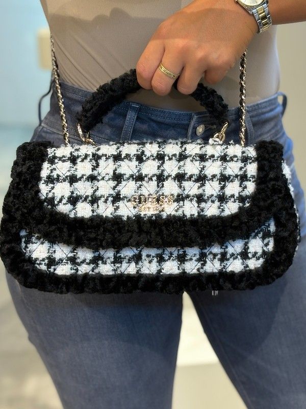 Ontdek de Guess Cristi Convertible Xbody Flap in stijlvol zwart! Deze trendy damestas is je nieuwe go-to modeaccessoire. Dankzij de verstelbare band draag je deze crossbody tas altijd comfortabel, precies zoals jij dat wilt. Gemaakt van tweed stof, geeft deze schoudertas een unieke textuur en een knusse uitstraling. De handige magnetische knoopsluiting zorgt ervoor dat je spullen veilig opgeborgen blijven. Combineer hem met een bijpassende zwarte riem of leren laarsjes voor een complete look. De Guess crossbody tas is een perfecte mix van stijl en functionaliteit. Voeg deze must-have tas toe aan je garderobe en maak elke outfit compleet!