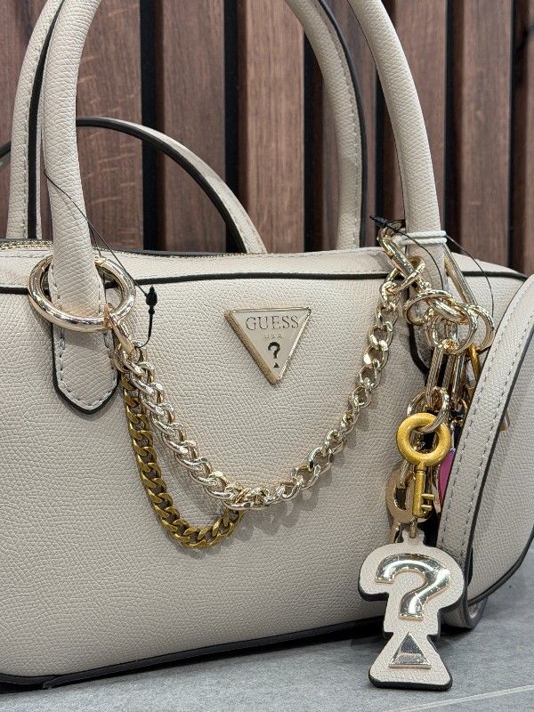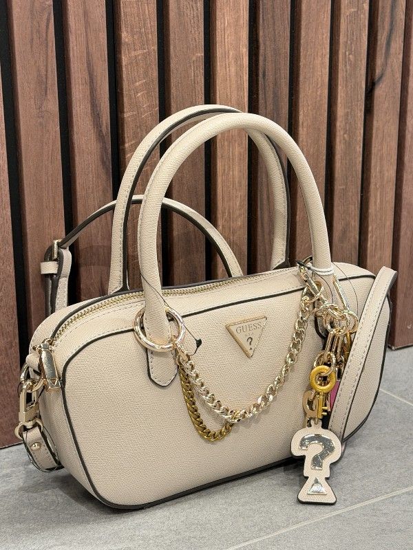 De GUESS Davina Small Satchel in beige is de perfecte damestas voor elke gelegenheid. Deze stijlvolle satchel heeft een ritssluiting, waardoor je al je essentials veilig kunt opbergen. Het iconische Guess Triangle logo geeft deze beige tas een trendy touch. Draag de Guess Davina Small Satchel elegant in je hand of comfortabel over je schouder als schoudertas. De beige GUESS tas is ideaal voor dagelijks gebruik en voegt een stijlvolle flair toe aan je outfit. Voeg hem nu toe aan je collectie en maak elke look compleet!
