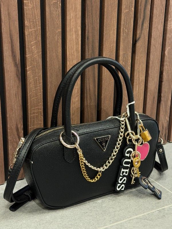 De Guess Davina Small Satchel in zwart is de perfecte damestas voor dagelijks gebruik. Deze stijlvolle zwarte satchel van Guess heeft het iconische Guess Triangle logo en een handige ritssluiting, waardoor je spullen veilig zijn opgeborgen. Met zijn veelzijdige ontwerp is deze tas perfect om mee te nemen als je onderweg bent. Draag de zwarte Guess Davina Small Satchel met trots en geef je outfit een modieuze upgrade. Voeg hem snel aan je collectie toe!