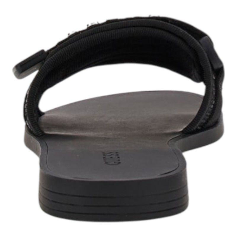 De GUESS Elyze3 zwarte dames slippers zijn een stijlvolle toevoeging aan je garderobe. Deze zwarte slippers van GUESS zijn voorzien van een logo op de band, wat zorgt voor een trendy touch. De verstelbare bandjes zorgen voor een comfortabele pasvorm die goed om je voet zit. Ideaal om zowel thuis als buiten te dragen. Vul je collectie aan met de Elyze3 slippers van GUESS. Ga voor stijl en comfort met deze zwarte GUESS slippers met logo band.