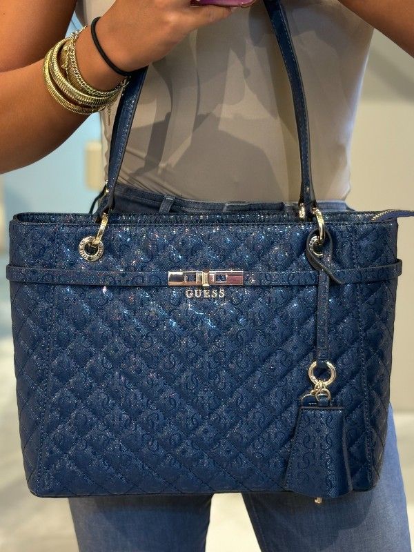 Ontdek de trendy Guess Idra Noel Tote, de perfecte blauwe dameshandtas voor elke gelegenheid. Deze satchel van Guess straalt stijl uit met zijn opvallende logoprint. Gemaakt van stevig materiaal, is deze middelgrote tas ideaal voor dagelijks gebruik. Met een handige ritssluiting blijven al je spullen veilig opgeborgen. Draag hem als handtas of gooi hem over je schouder voor een casual look. Combineer met bijpassende Guess accessoires voor een complete outfit. Voeg deze blauwe tas toe aan je collectie en geniet van de perfecte mix van mode en functionaliteit!