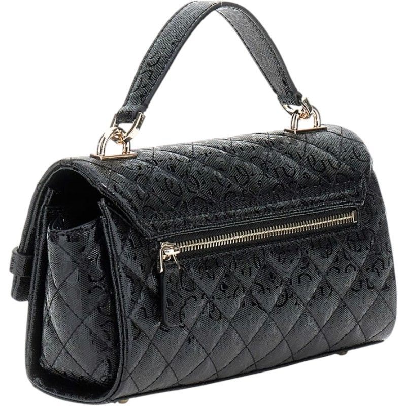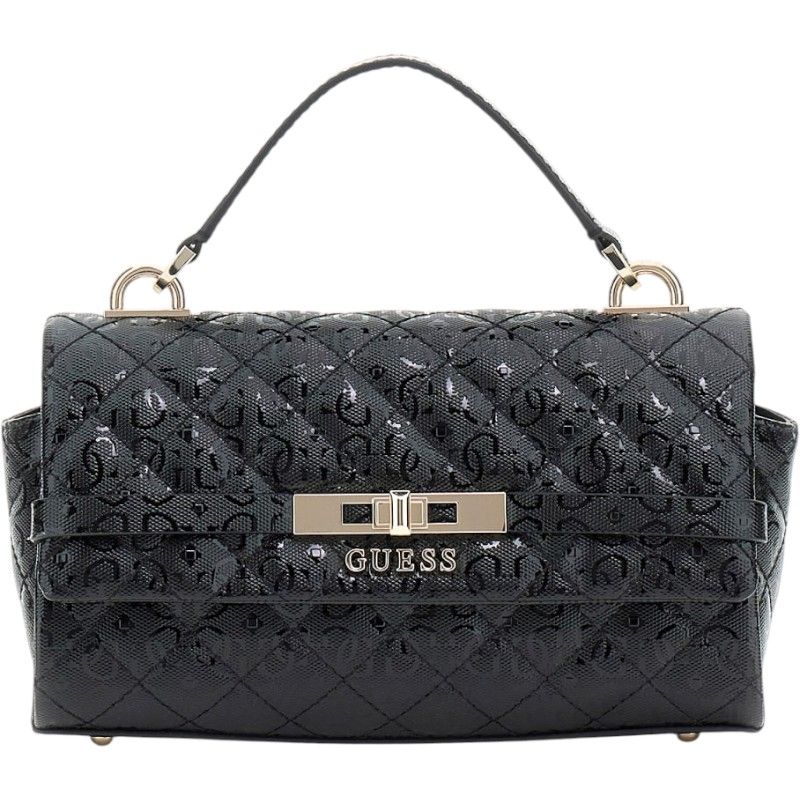 Ontdek de stijlvolle Guess Idra Top Handle Flap damestas! Deze trendy zwarte handtas heeft een opvallende logo print en biedt zowel een crossbody als handtas-ervaring dankzij de verstelbare schouderband. De tas is gemaakt van hoogwaardige leather look materialen en de gouden kleurdetails geven een extra sprankeling. Met de magnetische knoopsluiting zijn jouw spullen veilig en snel toegankelijk. Perfect voor een avondje uit of een dag in de stad. Upgrade je outfit met deze kleine tas en laat je vrienden versteld staan!