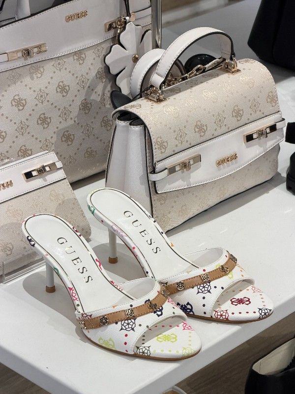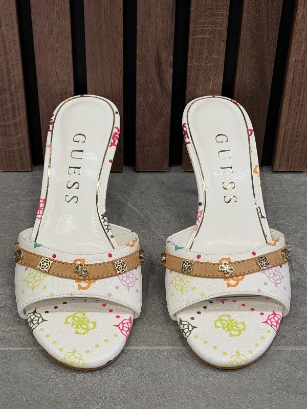 De GUESS Ivory witte damesmuil is een must-have voor elke garderobe. Deze stijlvolle witkleurige muil is voorzien van het opvallende Guess 4G's logoprint dat een trendy touch toevoegt. De hakhoogte van 7 centimeter biedt net dat beetje extra flair dat je zoekt. Perfect te combineren met je favoriete outfits voor een stijlvolle uitstraling. De witte Guess muil is een stralende eyecatcher en ideaal voor elke gelegenheid. Til je look naar een hoger niveau met deze Guess must-have!