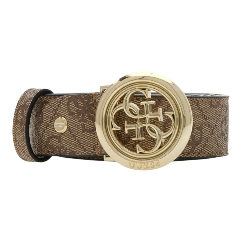 De GUESS Janie Logo Adj And Nt Rev H30 riem in bruin is de perfecte aanvulling op je garderobe. Deze bruine damesriem van GUESS is verstelbaar, zodat hij altijd comfortabel zit. Het accessoire kenmerkt zich door het opvallende logo, wat elke outfit een trendy touch geeft. Combineer deze bruine GUESS riem met je favoriete jeans of jurk voor een effortless look. Til je stijl naar een hoger niveau met deze must-have riem!