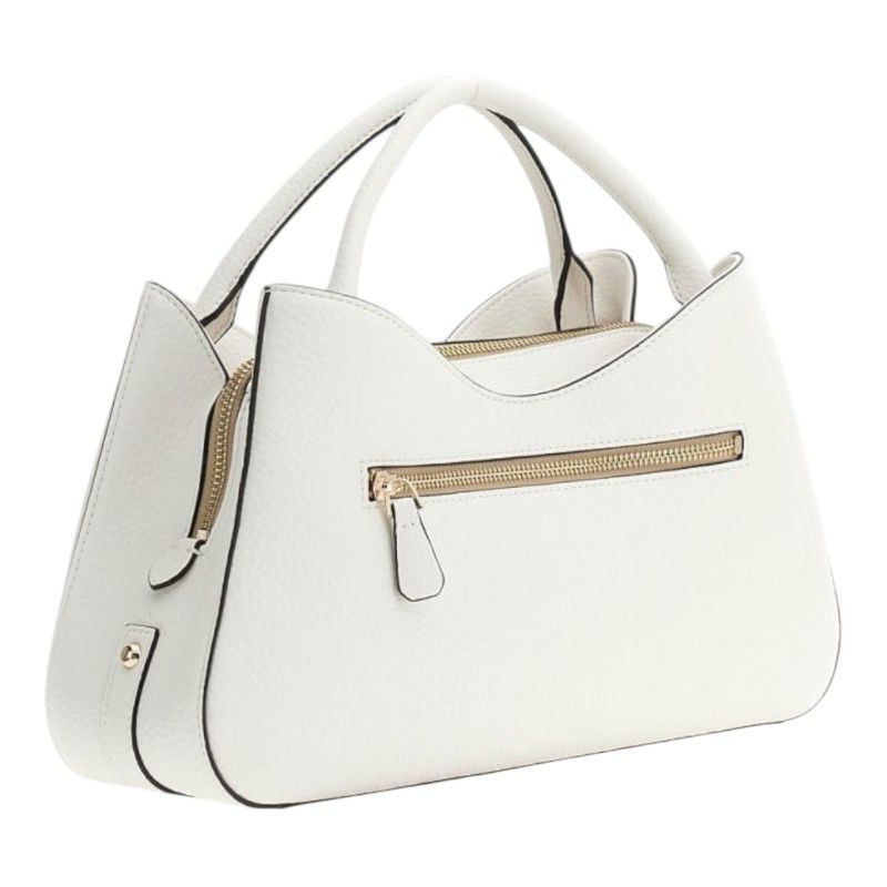De GUESS Jessa Girlfriend Satchel in wit is een trendy must-have voor elke modebewuste vrouw. Deze witte Guess damestas heeft een verstelbare band, zodat je hem gemakkelijk als schoudertas kunt dragen. Met de handige ritssluiting houd je je essentials veilig opgeborgen. Draag de witte Guess satchel naar je werk of tijdens een dagje shoppen. Voeg stijl en gemak toe aan je outfit met deze prachtige tas. De Jessa Girlfriend Satchel combineert moeiteloos mode en functionaliteit.stijl en gemak!