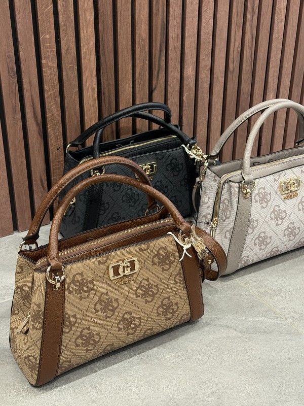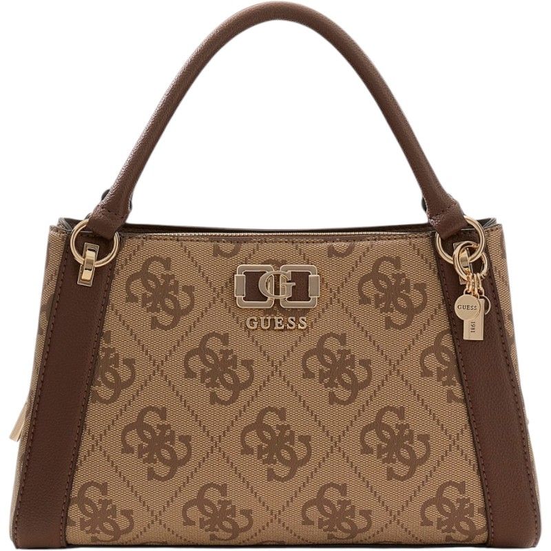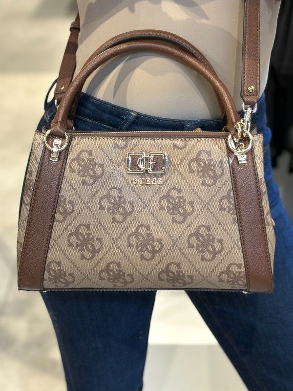 De Guess Karnilla Logo Gfriend Satchel in bruine tint voegt een vleugje stijl toe aan je outfit. Deze damestas heeft de iconische Guess 4G's logoprint, wat hem een unieke uitstraling geeft. De satchel is voorzien van een korte en een lange verstelbare en afneembare band, perfect voor handzaam gebruik. De prachtige Guess 4G's details zorgen voor een herkenbare look. Deze bruine Guess tas is ontworpen om elke outfit net dat beetje extra te geven. Voeg mode uit de eerste hand toe aan je collectie met deze must-have satchel!