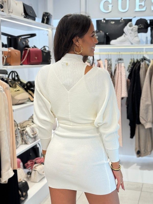 De GUESS Ls Dolman Anita Rib Dress in wit is je perfecte outfit voor dit seizoen. Deze stijlvolle damesjurk heeft een tijdloze uitstraling en is gemaakt om je stijlvol en zelfverzekerd te laten voelen. Dankzij de comfortabele pasvorm en het speelse ribpatroon valt deze witte GUESS jurk prachtig. Ideaal voor een avondje uit. Mis deze veelzijdige must-have niet in je garderobe.