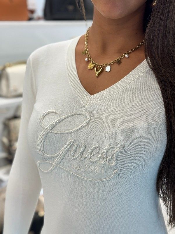 De GUESS witte LS VN Stephanie Logo Swtr is je nieuwe favoriete dames trui. Deze witte Guess trui valt soepel en comfortabel en bevat veel stretch. Met het iconische Guess-logo op de voorkant draag je stijl met gemak uit. De trui is ideaal voor een casual of trendy look. Combineer deze GUESS witte top moeiteloos met je dagelijkse outfits. Dit is dé trui voor elke fashionista die van wit en GUESS houdt. Voeg een vleugje stijl toe aan je garderobe!