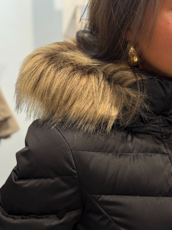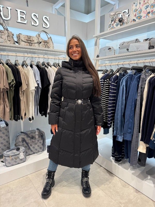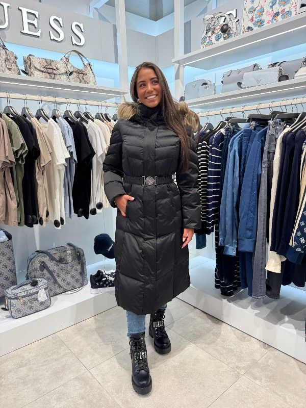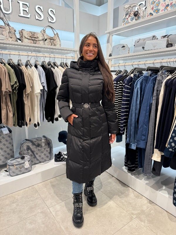 Houd de kou stijlvol op afstand met de Marina Long Real Down dames winterjas van Guess. Deze zwarte jas biedt warmte dankzij de gewatteerde voering en is gemaakt van winddicht materiaal. De rits- en drukknopensluiting zorgt ervoor dat je altijd goed ingepakt bent. Met de logo-riem creëer je makkelijk een trendy pasvorm. Handige zakken met knoopsluiting bieden ruimte voor je essentials. De afneembare capuchon maakt deze damesjas helemaal af, ook is de fake bont afneembaar. Combineer met bijpassende Guess accessoires voor een complete look. Met de Marina Long Real Down jas trotseer je elke winterdag met gemak.