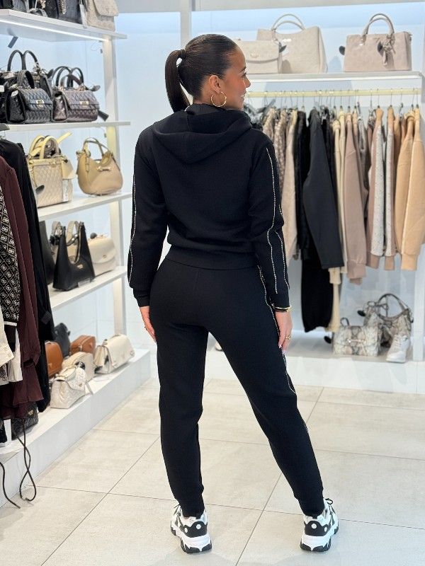 Het GUESS New Hooded Scuba Sweatshirt in zwart is jouw nieuwe favoriet. De band aan de zijkant is bewerkt met mooie steentjes en kant. Dit zwarte dames vest van GUESS heeft een praktische ritssluiting en een trendy capuchon, waardoor het perfect is voor een casual, maar stijlvolle look. Draag dit zwarte GUESS scuba sweatshirt als warme extra laag over je outfit. Voeg een vleugje zwart toe aan je wardrobe met dit veelzijdige vest. Tijd om je look een upgrade te geven!