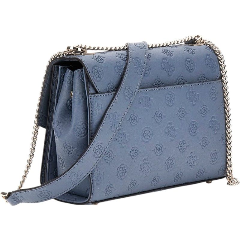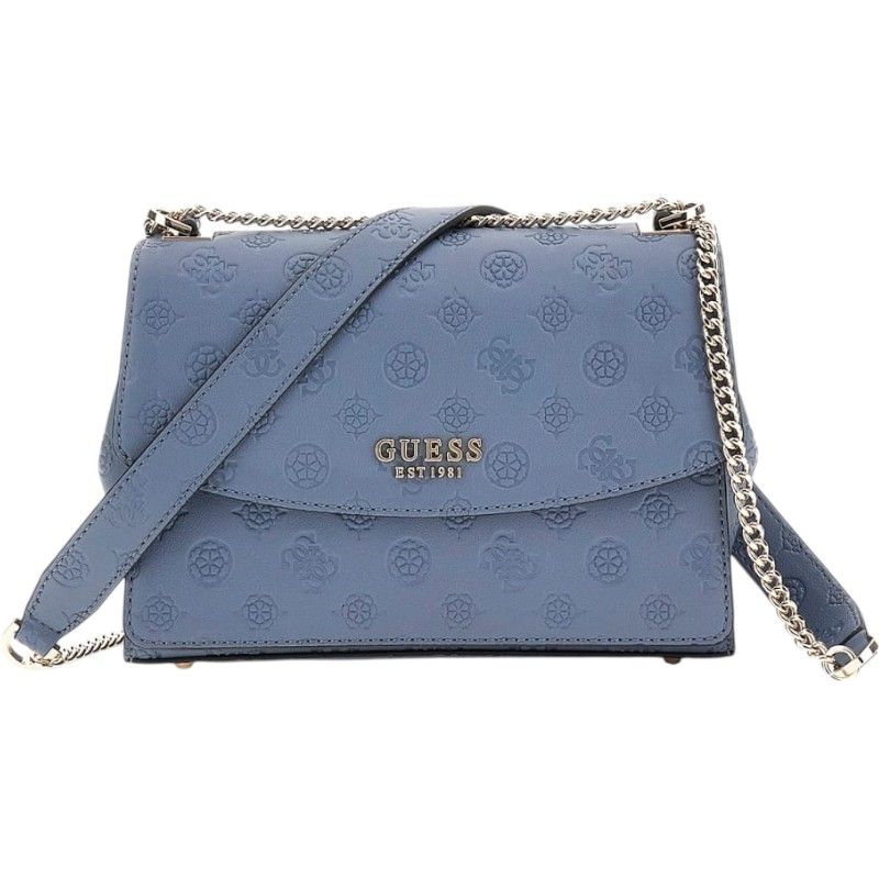 Deze blauwe Guess Phoebe Convertible crossbody is bewerkt met een Guess logo bedrukking en voorzien van zilveren accenten. De tas heeft een convertible schouderband en een extra vakje op de achterzijde.