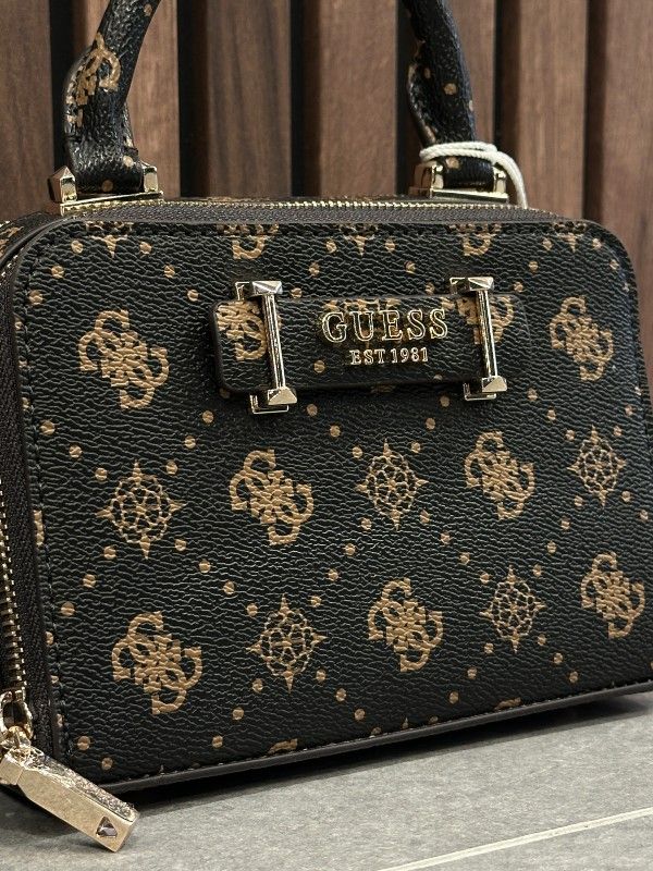 Maak kennis met de trendy Guess Silia Mini Satchel in een stijlvolle bruine tint. Deze kleine damestas is perfect voor elke gelegenheid. De satchel is gemaakt van stevig materiaal en is voorzien van een opvallende Guess 4G's logoprint. Dankzij de verstelbare en afneembare band kun je deze tas comfortabel als handtas of crossbody dragen. De praktische ritssluiting zorgt ervoor dat al je essentials veilig opgeborgen zijn. Of je nu de stad in gaat of een avondje uit, deze bruine Guess tas geeft elke outfit een trendy update. Ga voor stijl én gemak met de Silia Mini Satchel!