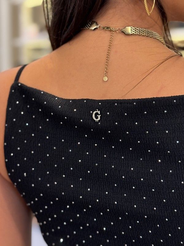 De Guess Sl Francine Smock Hotfix Dress in zwart is een stijlvolle must-have voor elke garderobe. Deze zwarte dames jurk van Guess heeft een comfortabele pasvorm en is perfect voor diverse gelegenheden. Het opvallende hotfix detail voegt een trendy touch toe, terwijl de smock constructie zorgt voor een flatterende uitstraling. Draag deze zwarte Guess jurk met je favoriete accessoires voor een complete look. De Guess Sl Francine Smock Hotfix Dress is een echte blikvanger die je niet wilt missen! Ga voor de ultieme stijl met deze veelzijdige zwarte jurk van Guess.