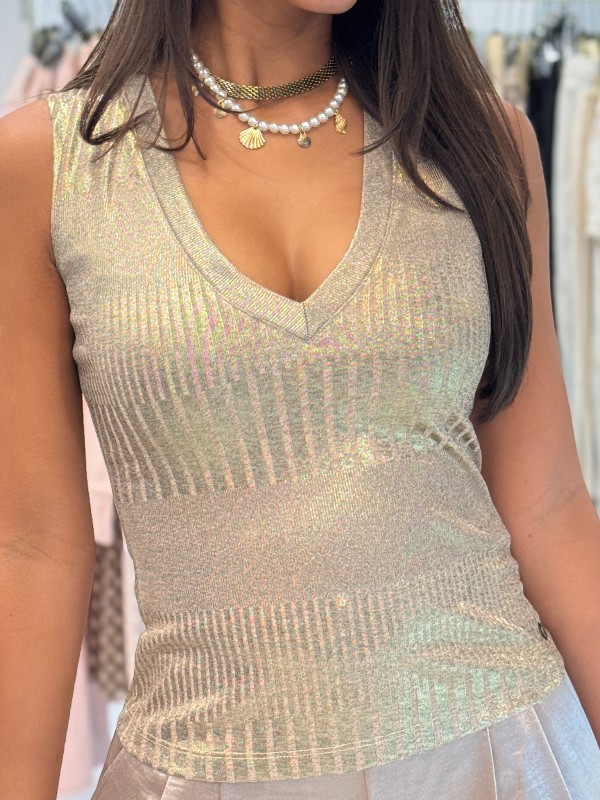 De Guess SL V-Neck Marilena Top in beige is de stijl die je outfit net dat beetje extra geeft. Deze dames top heeft een elegante V-hals en een luchtige pasvorm, perfect voor elke gelegenheid. De neutrale beige kleur maakt combineren met andere items een eitje. Deze Guess top is een must-have voor in je garderobe dankzij zijn veelzijdigheid en trendy look. Voeg een vleugje Guess toe aan je dagelijkse outfits met deze beige V-neck top. Perfect om je look te elevaten!
