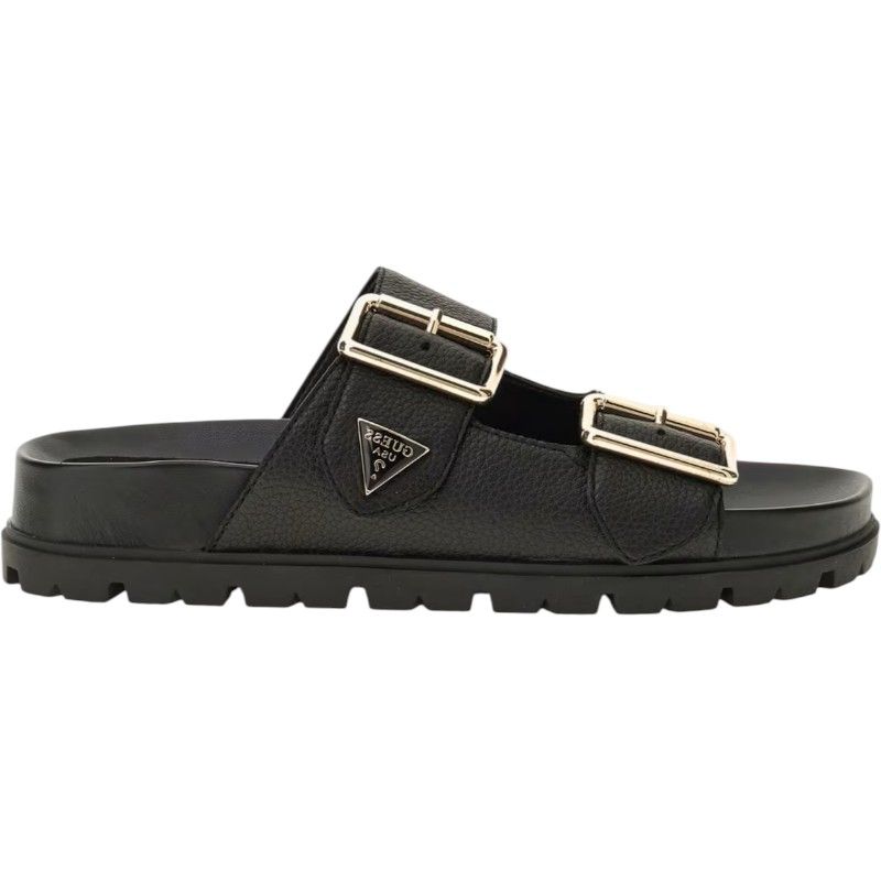 Stap stijlvol de zomer in met de zwarte Fasten slippers van Guess. Deze elegante damesslippers combineren comfort met mode, perfect voor elke gelegenheid. Gemaakt van hoogwaardig materiaal, bieden deze zwarte slip-ons niet alleen duurzaamheid maar ook een modieuze uitstraling. De Guess sandalen hebben een stevige, comfortabele band die je voet stevig op zijn plek houdt, zonder in te boeten op stijl. Draag deze zwarte Guess slippers met een bijpassende tas voor de ultieme fashion statement. Voeg een vleugje glamour toe aan je garderobe met deze must-have Guess slippers. Perfect voor een zomerse dag in de stad of een relaxte strandwandeling.