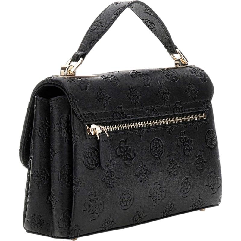 Verwen jezelf of een ander met deze trendy Guess Tisha Top Handle Flap tas in opvallend zwart. Deze elegant ontworpen damestas van Guess draag je gemakkelijk als crossbody dankzij de verstelbare en afneembare band. De tas heeft een stijlvol Guess 4G's logoprint en sluit veilig met een magnetische knoopsluiting. Combineer de zwarte handtas moeiteloos met je favoriete outfit en straal zelfvertrouwen uit. Perfect voor elke gelegenheid! Plaats deze must-have in je winkelmand en laat jouw fashion game naar een hoger niveau stijgen.
