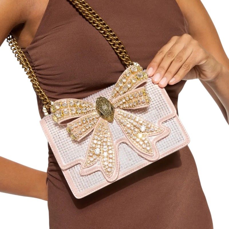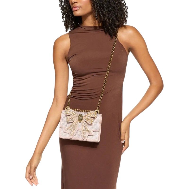 De Kurt Geiger Bow Small Shoreditch in roze is de perfecte crossbody damestas voor je trendy outfit. Deze roze handtas is voorzien van het iconische Eagle logo en heeft een verstelbare band, zodat je hem over je schouder of als crossbody kan dragen. De magnetische knoopsluiting zorgt ervoor dat je spullen veilig opgeborgen zijn, terwijl het kleurrijke design je look een frisse touch geeft. Deze Kurt Geiger tas in roze is ideaal voor elke gelegenheid en voegt zeker een statement toe aan je collectie. Voeg wat flair toe aan je dagelijkse stijl!