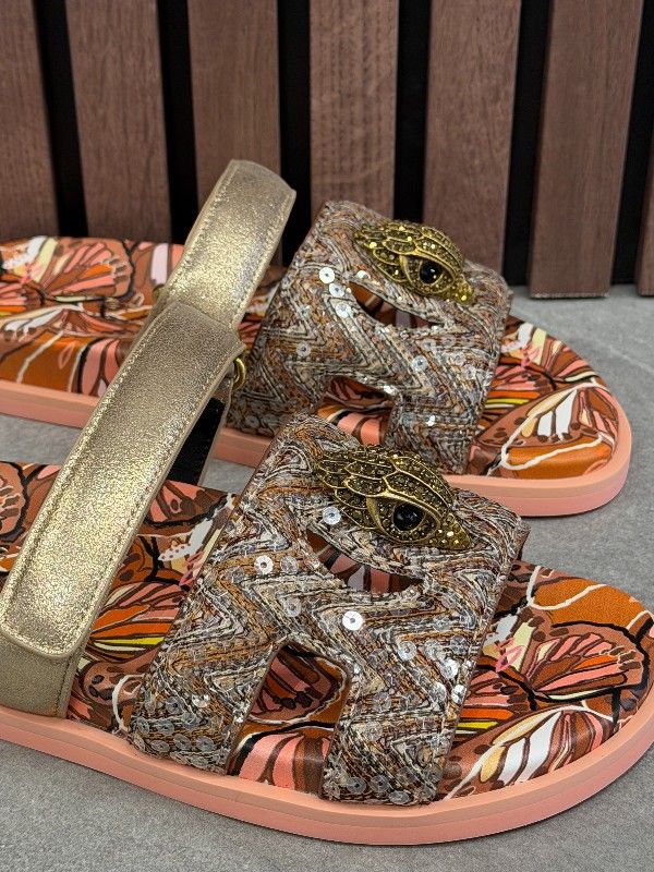 De Kurt Geiger Eagle Cut Out Sandal in bruin is de trendy slipper voor dames die je niet wilt missen. Deze bruine slippers hebben verstelbare bandjes voor een comfortabele pasvorm en zijn voorzien van het iconische Eagle logo. Het strakke ontwerp maakt ze ideaal voor zowel een dag in de stad als een ontspannen middag aan het strand. Met de Kurt Geiger branding en de stijlvolle bruine kleur zijn deze slippers een echte eyecatcher. Scoor de Kurt Geiger Eagle slippers en loop er fashionable bij!