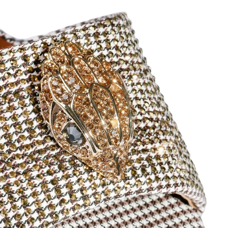 De Kurt Geiger beige Kensington Flat Sandal is de perfecte dames slipper voor zonnige dagen. Deze beige slipper van Kurt Geiger valt op door de schitterende strass steentjes op de band, wat een sprankelende touch aan je outfit geeft. Het iconische Eagle logo is subtiel aanwezig, wat zorgt voor een kenmerkende look. Ideaal voor zowel casual als wat meer geklede gelegenheden. Til je zomerse style naar een hoger niveau met deze Kurt Geiger slippers in beige. Voeg wat bling toe aan je garderobe!